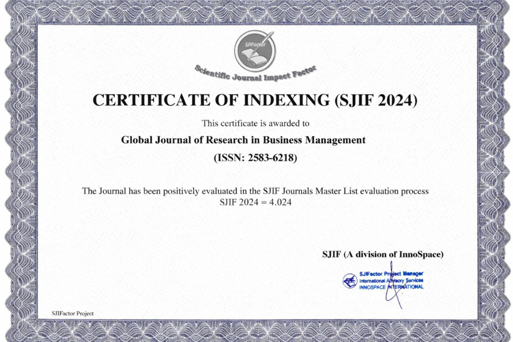 Global Journal of Research In Business Management (GJRBM) is an online version cum open-access and peer reviewed international journal, which publishes Original Research Articles, Review, Short Communications, Case Studies, and Essays. GJRBM publishes research papers across all academic disciplines in the Business Management fields.